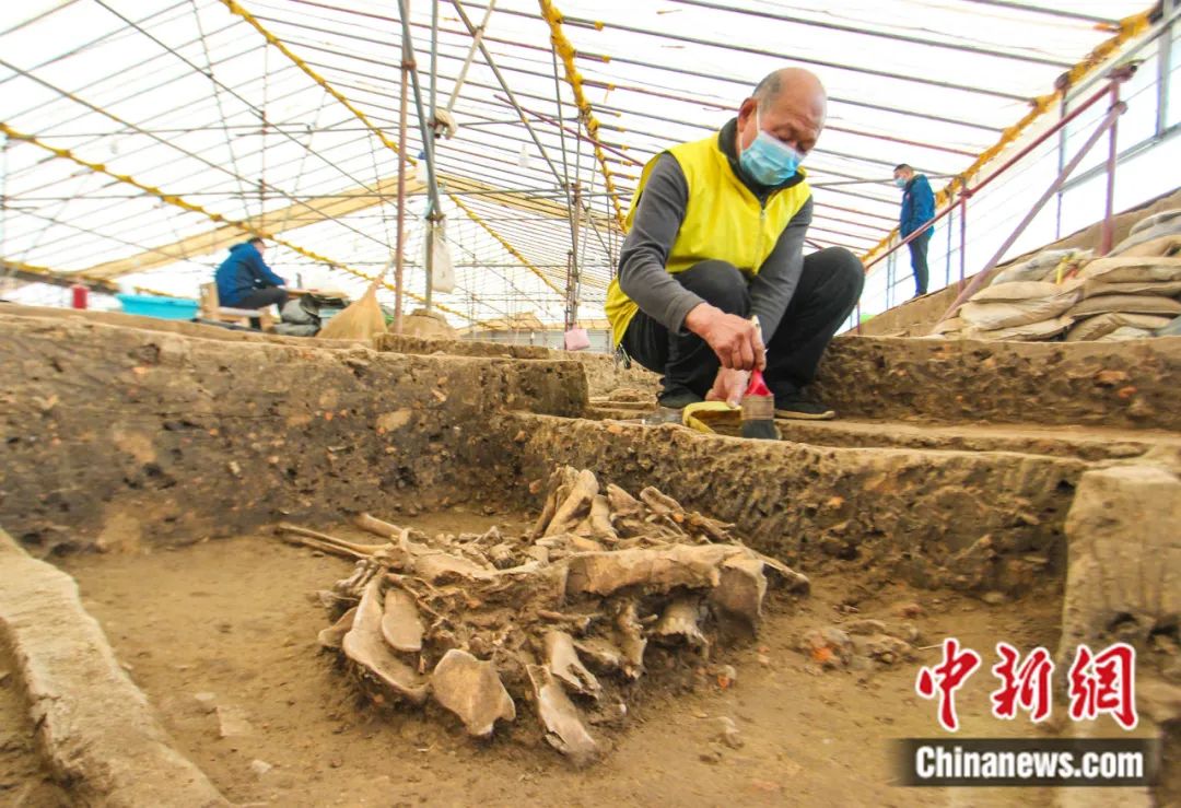 工作人員在河南南陽(yáng)黃山遺址考古發(fā)掘現(xiàn)場(chǎng)進(jìn)行清理作業(yè)。高嵩 攝