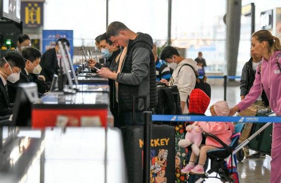 4月25日,南航工作人員在為旅客辦理值機(jī)手續(xù)。4月25日,一架中國(guó)南方航空CZ6015航班從烏魯木齊地窩堡國(guó)際機(jī)場(chǎng)起飛,前往土庫(kù)曼斯坦首都阿什哈巴德。南航新疆分公司介紹,這是目前國(guó)內(nèi)恢復(fù)的首條飛往土庫(kù)曼斯坦的國(guó)際航線(xiàn)。該航線(xiàn)恢復(fù)后,標(biāo)志著我國(guó)新疆與中亞五國(guó)航線(xiàn)全面恢復(fù)。(新華社記者 王菲 攝)