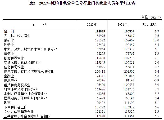 數(shù)據(jù)顯示,2022年,全國城鎮(zhèn)非私營單位就業(yè)人員年平均工資為114029元,比上年增長6.7%,增速比2021年回落3.0個(gè)百分點(diǎn),扣除價(jià)格因素實(shí)際增長4.6%。