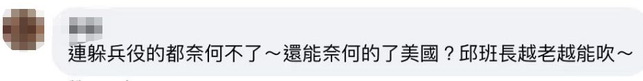 對于如此糊弄且不堅決地表態(tài),民眾留言評論,“全臺灣誰不知道美國想做什么事都是民進(jìn)黨默許的”“連躲兵役的都奈何不了,還能奈何的了美國?”“先把部隊的問題解決好吧,只會叭叭叭”“嘴巴很厲害,實際跑最快 !”