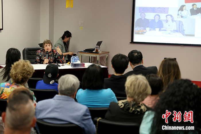 當地時間5月13日,加拿大著名作家、詩人、漢學家李莎·卡爾杜齊(Lisa Carducci)在中國駐蒙特利爾總領事館獲頒中國駐加拿大使館2022年度“大使獎”。李莎在中國駐蒙特利爾總領事館舉辦講座,向當地近百位各界人士講述自己在中國的經歷及她眼中的文化差異等。 中新社記者 余瑞冬 攝