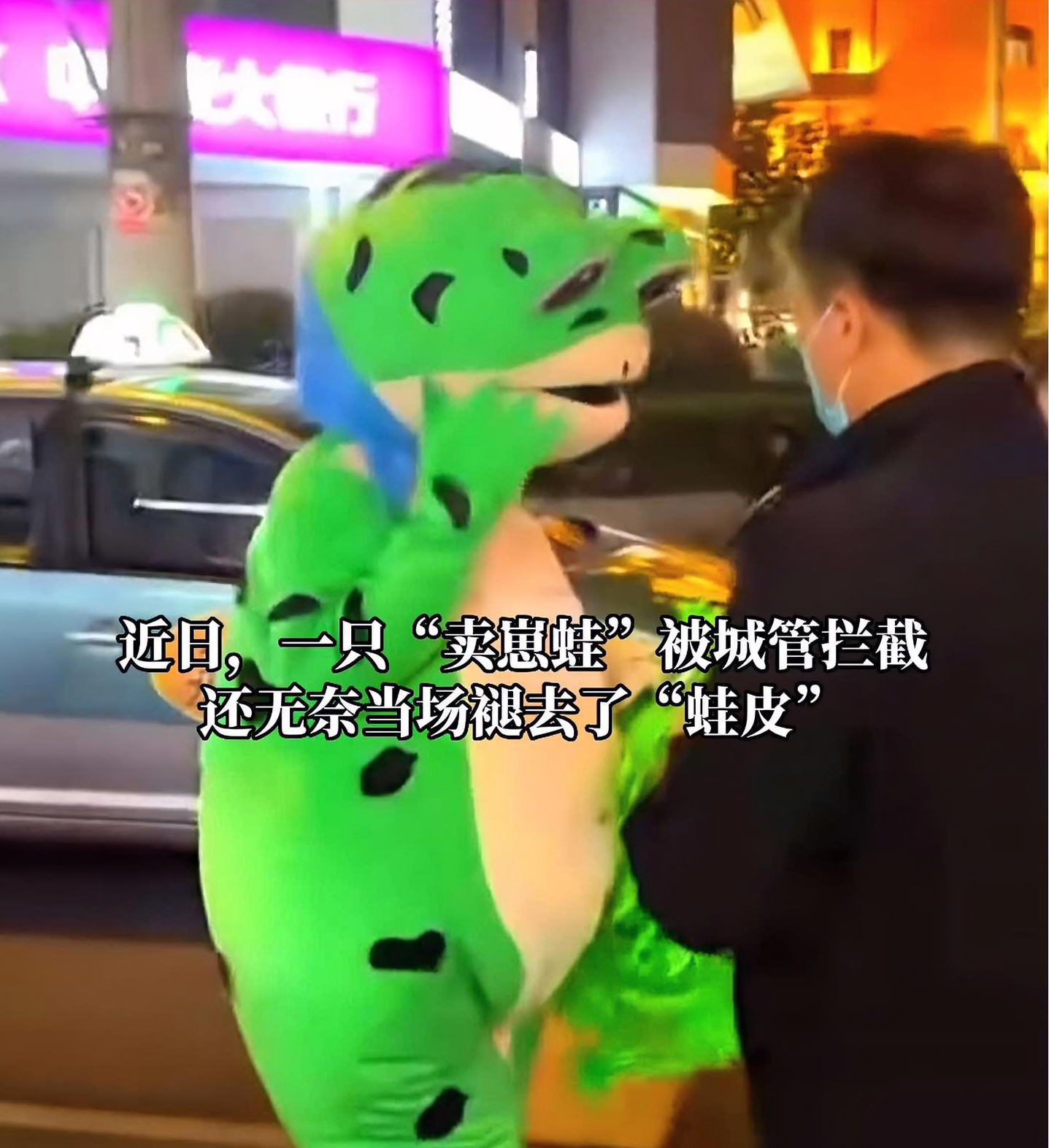 最近,“網(wǎng)紅賣崽青蛙上海落網(wǎng)”在網(wǎng)上引起熱議。在上海街頭,一只“賣崽青蛙”被城管攔截,還無(wú)奈當(dāng)場(chǎng)褪去了“蛙皮”。