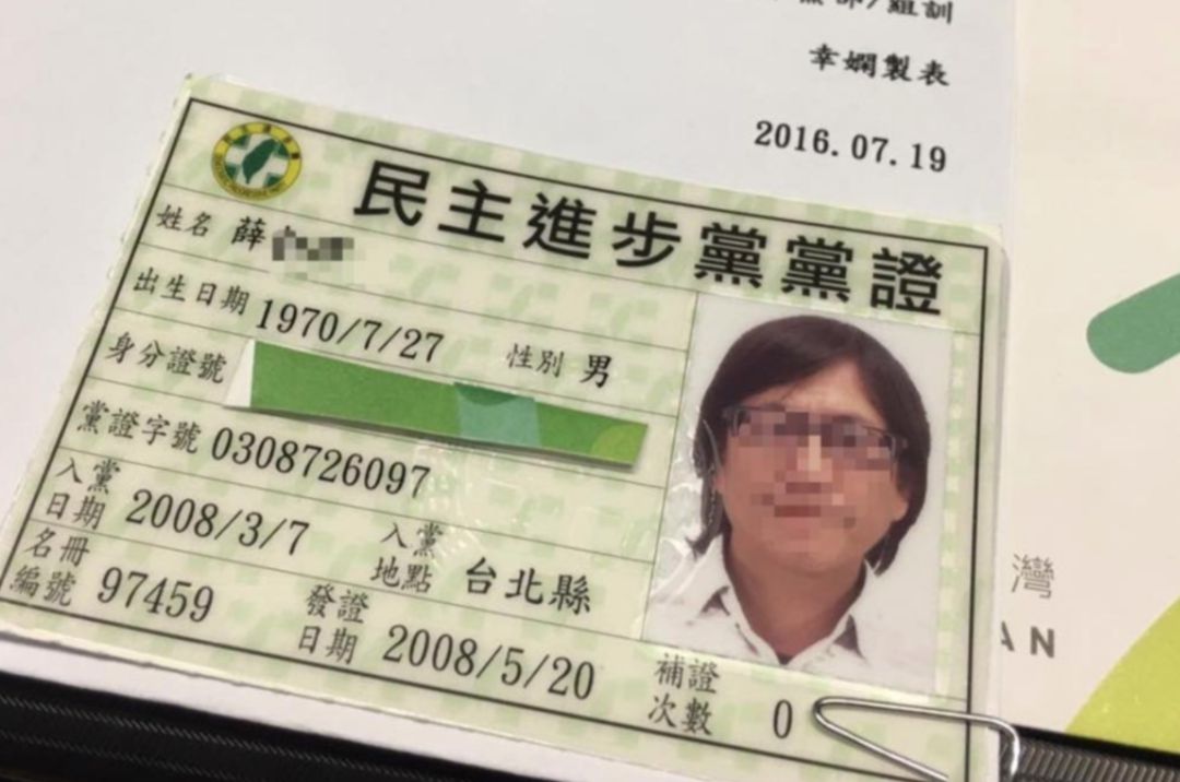 被指涉性騷擾案、且與民進黨高層關(guān)系密切的導演“輝哥”,被網(wǎng)友曬出其民進黨黨證。圖片來源:聯(lián)合新聞網(wǎng) 翻拍自該導演臉書。