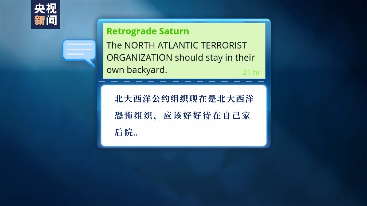 還有網(wǎng)友批評稱:“北大西洋公約組織現(xiàn)在是北大西洋恐怖組織,應(yīng)該好好待在自己家后院?!?/p>