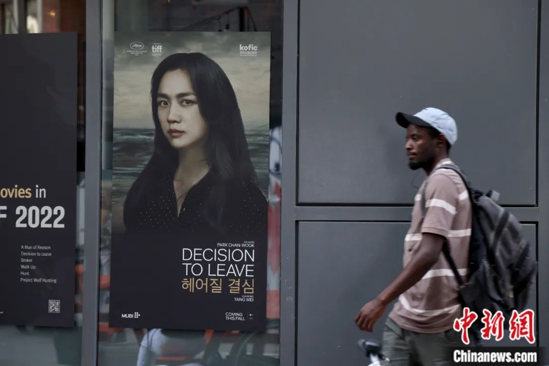 韓國(guó)影片《分手的決心》亮相第47屆多倫多國(guó)際電影節(jié),行人從主演湯唯的海報(bào)前經(jīng)過。余瑞冬 攝