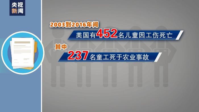 農(nóng)業(yè)領(lǐng)域是美國(guó)雇傭童工的重災(zāi)區(qū)之一。據(jù)美國(guó)非營(yíng)利組織“農(nóng)場(chǎng)工人就業(yè)項(xiàng)目聯(lián)合會(huì)”提供的數(shù)據(jù),美國(guó)仍有50萬至80萬名童工在農(nóng)場(chǎng)工作。農(nóng)場(chǎng)勞作繁重、條件艱苦,童工還常被置于因天氣、農(nóng)藥及使用農(nóng)具農(nóng)機(jī)所產(chǎn)生的危險(xiǎn)中?!度A盛頓郵報(bào)》報(bào)道,2003年至2016年間,美國(guó)有452名兒童因工傷死亡,其中237名童工死于農(nóng)業(yè)事故。