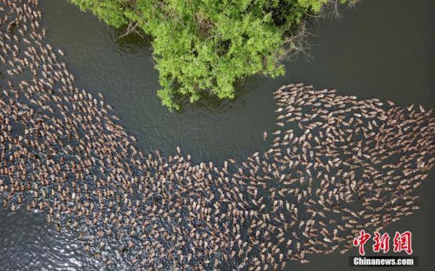 鴨子上岸后抖動(dòng)下身上的羽毛。泱波 攝