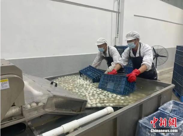 “公司現(xiàn)有鴨蛋加工生產(chǎn)線三、四條,單天產(chǎn)能達(dá)到20萬枚。此外還有15家農(nóng)戶和我們合作,以此來保證供應(yīng)量?!备哙]鴨集團(tuán)生產(chǎn)管理部副部長(zhǎng)陳菁說。