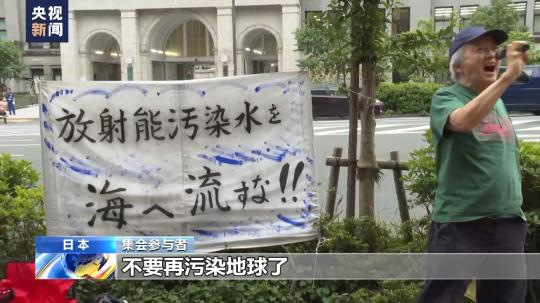 集會參與者:說是“處理水”實(shí)則是污染水,里面含有大量的放射性物質(zhì)。如果真的是安全的話,那請他們用那個水洗澡,去使用它,用它做飯,去喝它,這樣生活五年的話應(yīng)該就清楚了。像這樣,沒有任何人能說它實(shí)際上是安全的,沒有人能證明它是安全的。