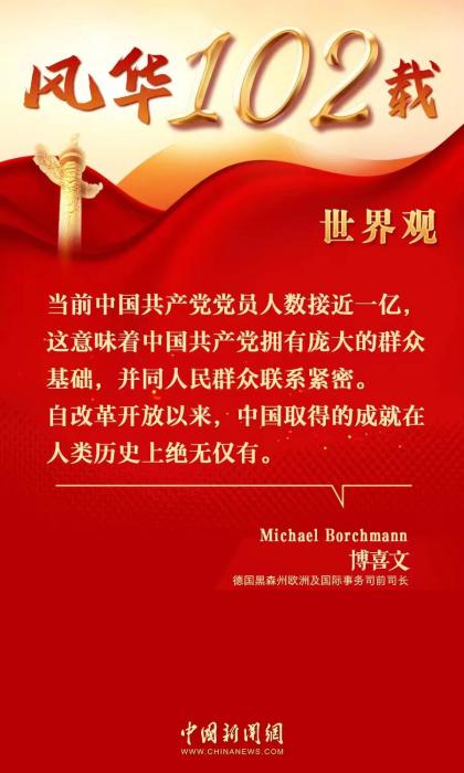 中新網(wǎng)7月5日電 (陳天浩)2023年是中國共產(chǎn)黨建黨102周年。近日,德國黑森州歐洲及國際事務(wù)司前司長博喜文(Michael Borchmann)在接受中國新聞網(wǎng)專訪時(shí)表示,中國共產(chǎn)黨的成功離不開同人民群眾的緊密聯(lián)系。