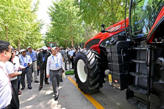 看著現(xiàn)場陳列的一排排大型農(nóng)機裝備,駐華使節(jié)們興致勃勃,紛紛拍照留念,并不時就技術細節(jié)、性能參數(shù)、應用場景等問題與在場工程技術人員交流。