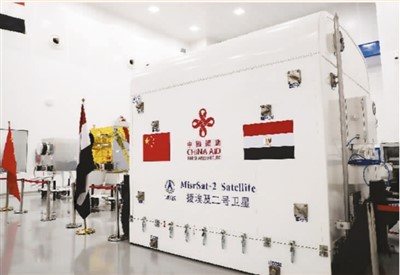中國政府援助埃及二號(hào)衛(wèi)星初樣星交付儀式6月25日在埃及航天城衛(wèi)星總裝集成測試中心舉行。此次交付使埃及成為首個(gè)具備衛(wèi)星總裝、集成和測試能力的非洲國家。圖為交付儀式現(xiàn)場。