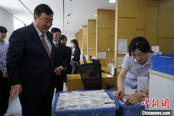 中新社首爾7月7日電 (記者 劉旭)當(dāng)?shù)貢r(shí)間7日,中國(guó)駐韓國(guó)大使邢海明赴首爾中國(guó)簽證申請(qǐng)服務(wù)中心調(diào)研,了解中心運(yùn)營(yíng)情況,慰問(wèn)中心工作人員,并同現(xiàn)場(chǎng)簽證申請(qǐng)人親切交流。使館領(lǐng)僑處公參鐘洪糯陪同。
