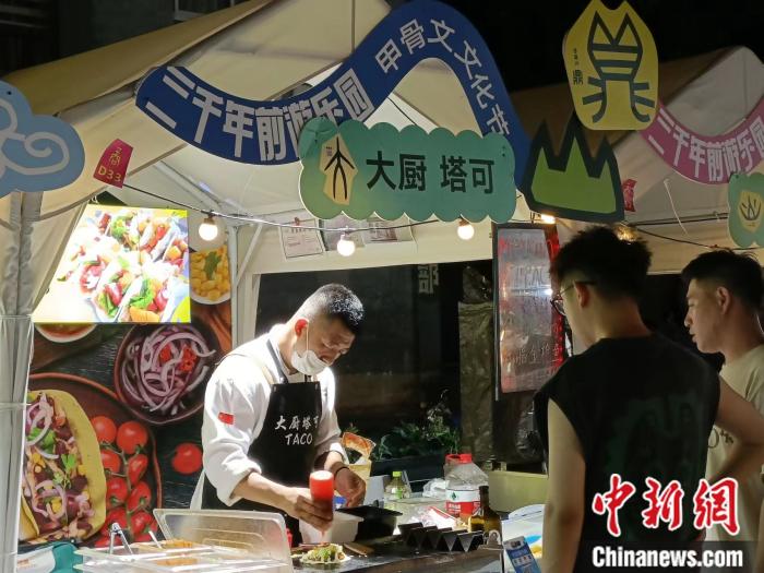 中新財經了解到,該夜市舉辦時間為6月9日-7月9日,每天下午4點-晚上10點,為沉浸式甲骨文主題夜市。盡管打著甲骨文藝術節(jié)的旗號,但在涵蓋小吃、飲品、手工飾品、互動游戲等各色賣點夜市上,游客們依然用行動投票出了他們最感興趣的環(huán)節(jié)——排起長隊的,無一不是特色小吃。
