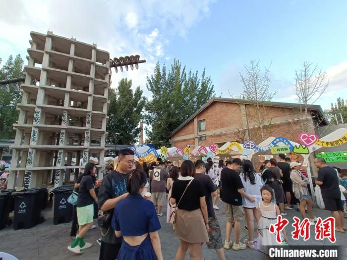 7月8日晚上8點,盡管天色已經暗下來,但北京的地表溫度仍在30℃以上。在798藝術區(qū)南門,一處方形場地被分割成幾排街道,200余家商鋪聚集在這里。在臨時搭建的白色攤位前,擠滿了游客。