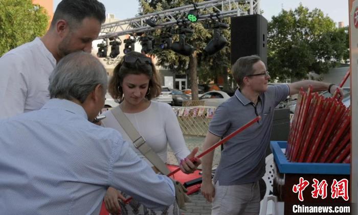 7月1日,布達(dá)佩斯東升美食街上的抽簽互動(dòng)游戲。(布達(dá)佩斯東升美食街供圖)
