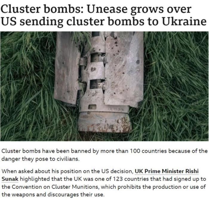 △英國廣播公司:集束彈藥因其對平民構(gòu)成的長期風險,已被全世界上百個國家禁用。就連一向積極軍援烏克蘭的英國,也“不鼓勵”美國提供這種大殺傷力武器。
