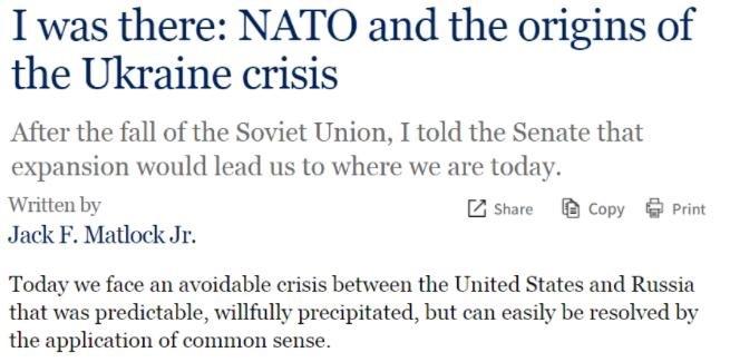 △美國昆西負責任治國研究所網(wǎng)站:美國最后一任駐蘇聯(lián)大使馬特洛克曾撰文感嘆,“我們今天正面臨一場原可避免的危機。這是一場可被預測、也的確曾被預測、卻又被蓄意促成的危機”。