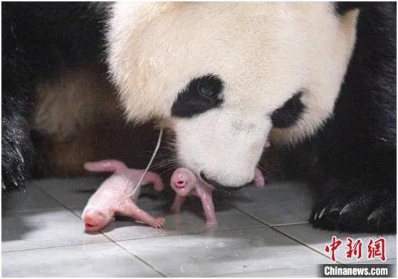 當(dāng)?shù)貢r(shí)間2023年7月7日,大熊貓“愛寶”在韓國(guó)三星愛寶樂園產(chǎn)下雙胞胎幼崽。圖為“愛寶”與幼崽?!?韓國(guó)三星愛寶樂園供圖)