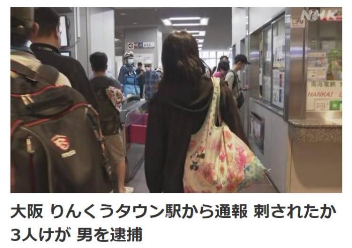 當?shù)貢r間23日上午10時30分許,日本大阪泉佐野市的臨空鎮(zhèn)車站發(fā)生了一起持刀傷人事件。圖片來源:日本放送協(xié)會(NHK)報道截圖