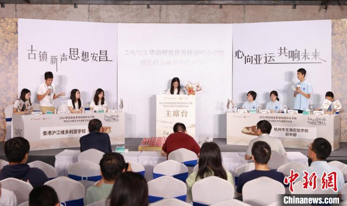 中新網(wǎng)紹興7月24日電(項(xiàng)菁)辯以明思,論以博學(xué)。7月22日至26日,2023華語辯論世界杯初中小學(xué)組暨安昌古鎮(zhèn)青少年思想節(jié)活動(dòng)在浙江省紹興市柯橋區(qū)安昌古鎮(zhèn)舉行,辯論板塊分為團(tuán)體賽與個(gè)人賽,來自世界各地64支隊(duì)伍、64名個(gè)人選手圍繞“亞運(yùn)”“文化”等話題展開辯論,角逐“最強(qiáng)辯手”。
