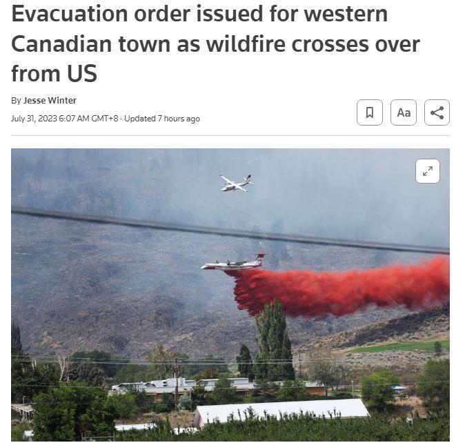 據(jù)報道,加拿大不列顛哥倫比亞省野火管理部門當?shù)貢r間30日稱,這場名為“鷹崖”(Eagle Bluff)的野火距離奧索尤斯約四公里,目前在加拿大邊境一側(cè)的燃燒面積估計為885公頃,美國一側(cè)的燃燒面積大約為2000公頃。