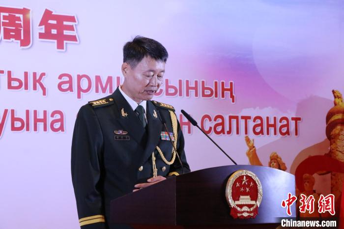 當(dāng)?shù)貢r(shí)間7月28日晚,哈薩克斯坦阿斯塔納,中國駐哈薩克斯坦大使館舉行慶祝中國人民解放軍建軍96周年招待會。圖為國防武官胡德君大校在致辭中?! ≈行戮W(wǎng)記者 張碩 攝