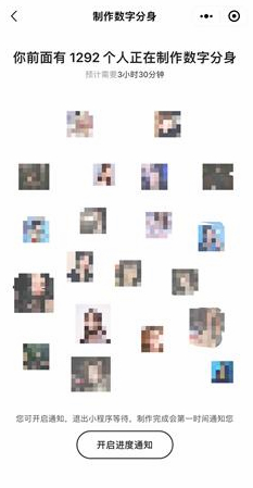 在提供素材后,往往要等待幾個小時才能完成“數(shù)字分身”制作。 截圖自妙鴨相機(jī)小程序。