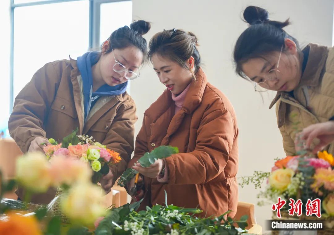 浙江省湖州市長興縣小浦鎮(zhèn)小浦村文化禮堂,婦聯(lián)女同胞們在學(xué)習(xí)插花。陳海偉 攝