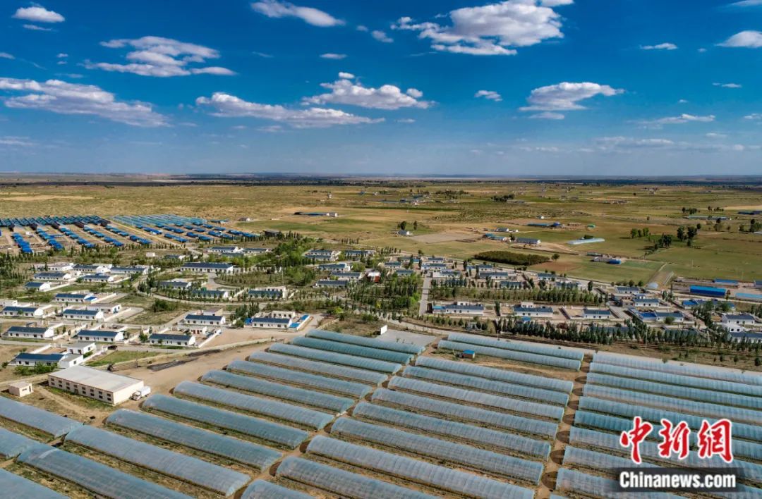 2023年6月3日拍攝的鄂爾多斯市鄂托克前旗敖勒召其鎮(zhèn)馬場井村易地搬遷集中安置點。王正 攝