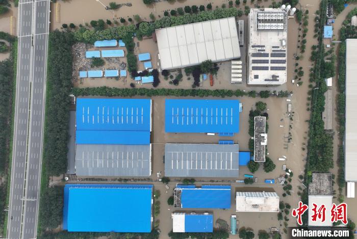 8月5日,中圖網倉儲中心所在區(qū)域依然有大量積水。(無人機照片)中新社記者 韓冰 攝