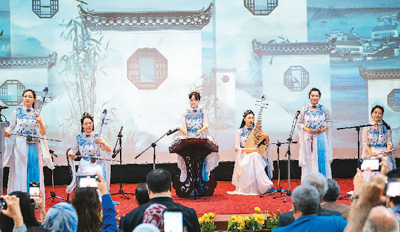 演出結(jié)束后,臺下掌聲雷動?!疤寐犃?,我是第一次聽用瓷樂演奏的樂曲,真是妙不可言!”在開羅大學(xué)二年級學(xué)習(xí)中文的拉莎告訴記者。精彩紛呈的瓷樂表演,讓現(xiàn)場觀眾感受到了景德鎮(zhèn)瓷器“聲如磬”的特點(diǎn),也領(lǐng)略到陶瓷與音樂交融的魅力。