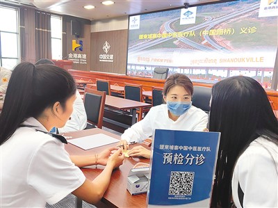 金港高速是柬埔寨第一條高速公路,是中柬共建“一帶一路”重點項目,柬埔寨本地員工占比達到88%。這里高溫高濕的工作環(huán)境,導致頸肩腰腿痛疾病及胃腸病在員工中高發(fā)。義診現(xiàn)場,中醫(yī)醫(yī)師用心傾聽每個員工的癥狀和困擾,望聞問切,耐心診察,辨證施治,制定個性化的治療方案。