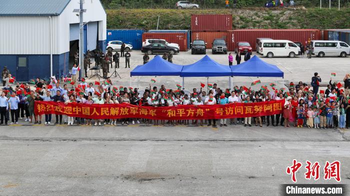 上午10時(shí)許,和平方舟緩緩靠抵維拉港主碼頭。瓦方在碼頭舉行了隆重的歡迎儀式,“和諧使命-2023”任務(wù)指揮員檢閱瓦儀仗隊(duì),當(dāng)?shù)孛癖娤蚱浍I(xiàn)上傳統(tǒng)飾物,并表演傳統(tǒng)歡迎舞蹈。瓦努阿圖總理卡爾薩考等政要,中國(guó)駐瓦努阿圖大使李名剛及使館工作人員,當(dāng)?shù)孛癖?、華僑華人、援瓦醫(yī)療隊(duì)和中資機(jī)構(gòu)代表等在碼頭迎接。