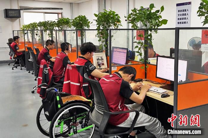 殘疾員工在圓通速遞從事客服工作。中新財(cái)經(jīng) 吳家駒 攝