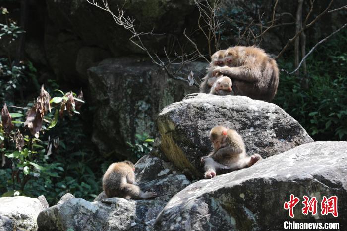 當(dāng)天,在黃山市浮溪短尾猴野外研究觀測(cè)基地內(nèi),成群結(jié)隊(duì)的黃山短尾猴或在小河溝、小溪邊翻石扒枯枝爛葉尋找食物,又或依偎在石壁上曬太陽,還有的在松石和護(hù)欄間嬉戲,賣萌調(diào)皮的樣子讓人難以忘懷。