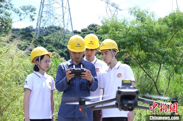 在南方電網(wǎng)公司深圳供電局實習的港澳臺大學生學習開展無人機巡視作業(yè)。(南方電網(wǎng)供圖)