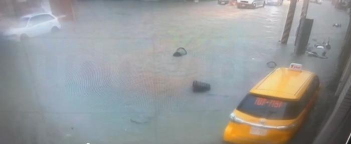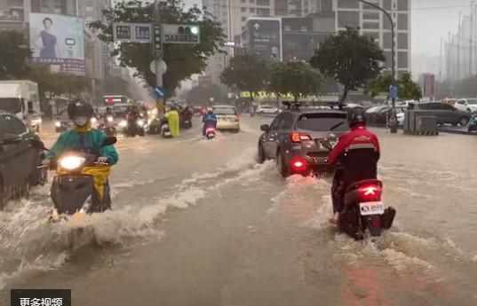 圖為臺(tái)灣高雄市路面淹水。圖片來源:臺(tái)灣“中時(shí)新聞網(wǎng)”視頻截圖