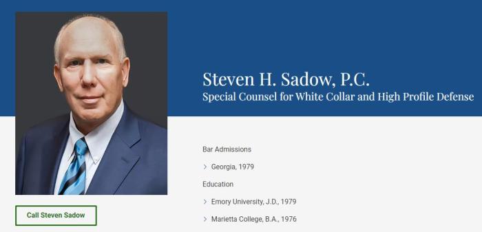 據(jù)報道,曾在佐治亞州為特朗普辯護的芬德林,將被一名來自亞特蘭大的律師薩多取代,他的網(wǎng)站簡介稱他是“為白領(lǐng)和知名人士辯護的特別律師”。