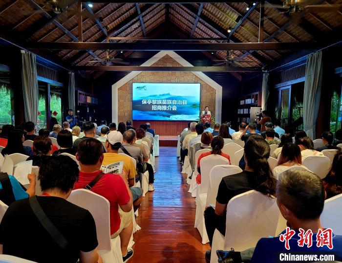 保亭縣向來訪臺灣同胞介紹當(dāng)?shù)亻_發(fā)投資項(xiàng)目。 王曉斌 攝