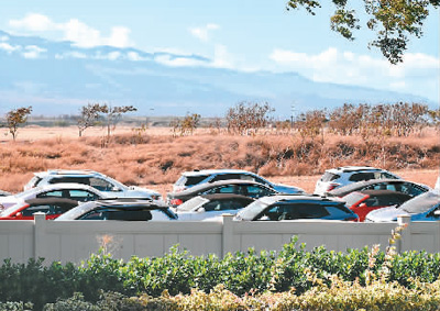 8月24日,美國夏威夷毛伊島卡胡盧伊機場外的一片空地上停放著租車公司沒有租出去的汽車。