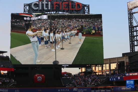 9月1日,在美國紐約大都會棒球隊主場花旗球場,兒童合唱團在“中華之夜”暨“你好!中國”旅游推廣品牌發(fā)布活動結束后表演。