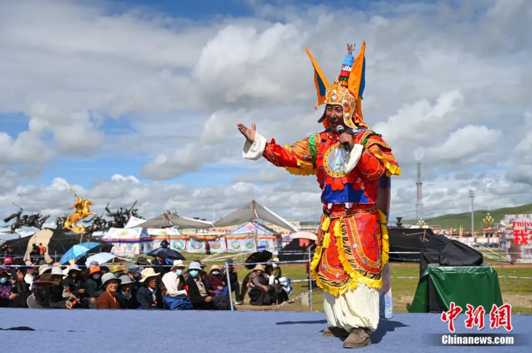 2023年8月9日,那曲賽馬節(jié)上,格薩爾說唱藝人登臺(tái)演出。趙朗 攝