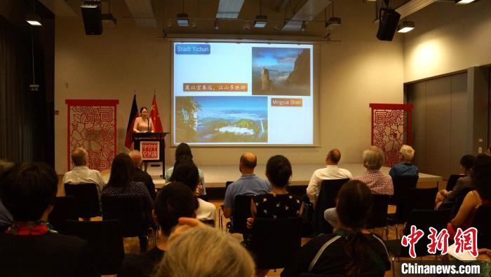 圖為開幕式現(xiàn)場(chǎng),孫勤航向觀眾介紹江西。柏林中國文化中心供圖
