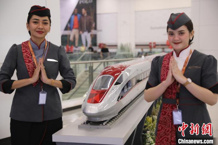 圖為工作人員從雅萬(wàn)高鐵列車模型前走過(guò)。李志全攝