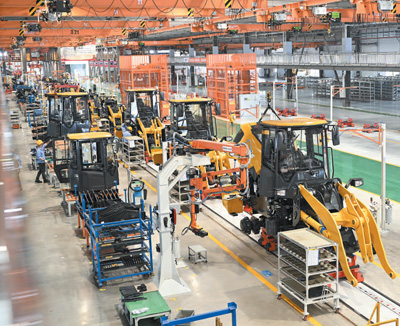 6月2日,廣西柳州市柳工裝載機(jī)燈塔工廠里,工人在升級(jí)后的車間里趕制海外訂單。