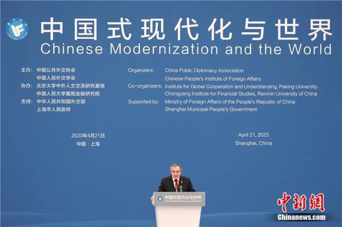2023年4月21日,“中國式現(xiàn)代化與世界”藍廳論壇在上?!笆澜鐣蛷d”舉辦,沙拉夫出席論壇開幕式并致辭。殷立勤 攝