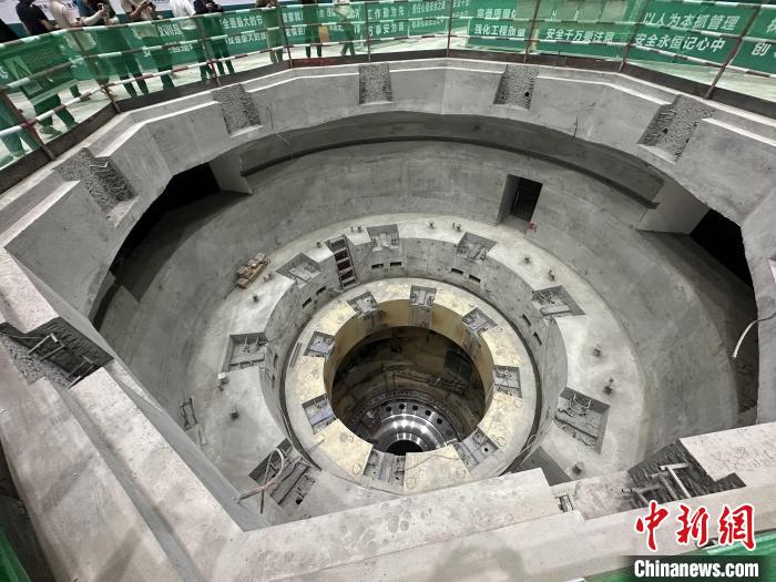 9月9日,陜西鎮(zhèn)安抽水蓄能電站地下廠房3號(hào)機(jī)組機(jī)坑實(shí)景。中新社記者 張一辰 攝