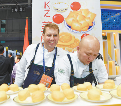 8月17日,在新疆烏魯木齊舉行的2023(中國)亞歐商品貿(mào)易博覽會(huì)上,來自哈薩克斯坦的廚師制作該國美食。