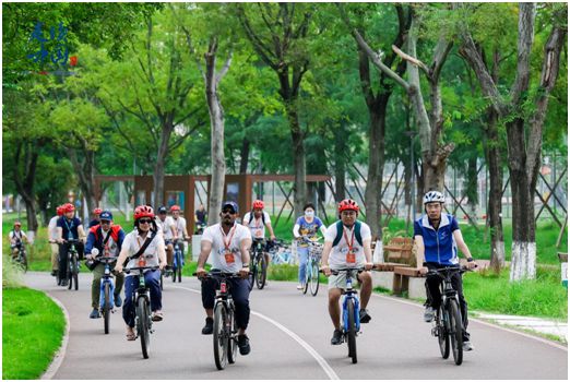 直播記錄下了外媒記者們騎行打卡世界規(guī)模最大的綠道系統(tǒng)——天府綠道核心“一軸”錦江綠道的全程:從鳥語花香的桂溪生態(tài)公園出發(fā),在綠樹掩映的婚姻登記所簽訂“城市婚書”,在亞洲最大單體建筑新世紀(jì)環(huán)球中心南側(cè)濕地學(xué)習(xí)四川話,在錦城湖4號湖畔撞線……